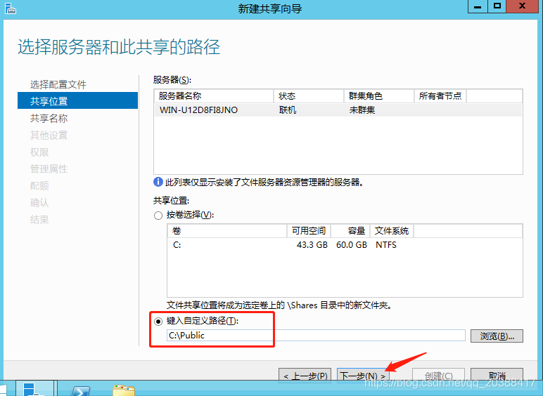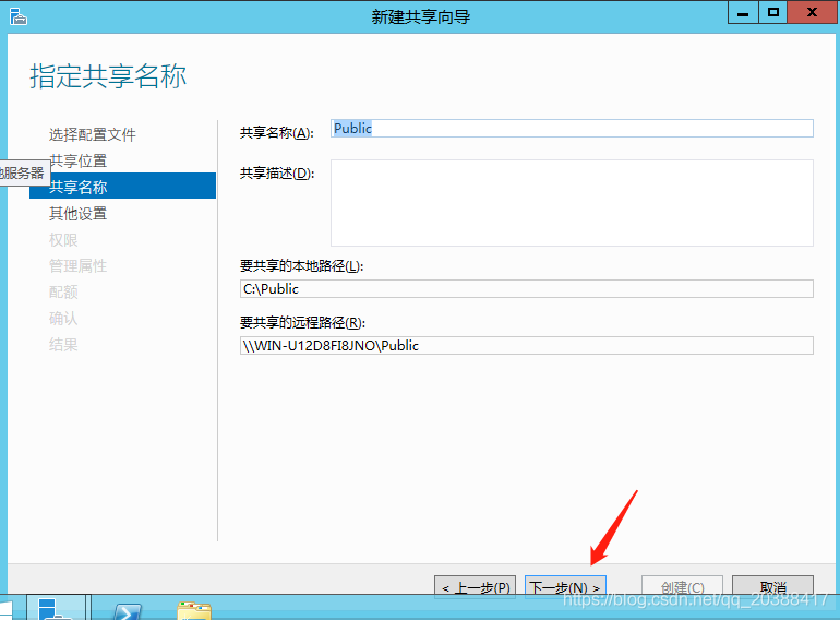 打開文件和存儲服務--共享--點擊若要創建文件共享,請啟動新加共享向導