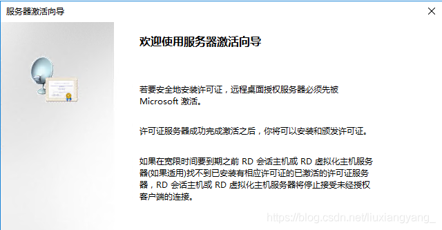 根據(jù)提示打開遠(yuǎn)程桌面授權(quán)網(wǎng)站,選擇啟用許可證服務(wù)器: