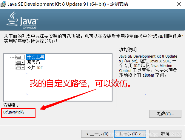 安裝程序進行時,首先安裝jdk(默認路徑:C:\Program Files(x86)\Java\jdk1.8.0-60\)再進行jre的安裝(默認路徑:C:\Program Files(x86)\Java\jre1.8.0-60\),我們不喜歡c盤安裝那么多軟件,當(dāng)我們自定義安裝時,若都安裝在一個文件夾下,則后安裝的jre會覆蓋原有文件。也就是說,jre一定要安裝在另一個文件夾中。