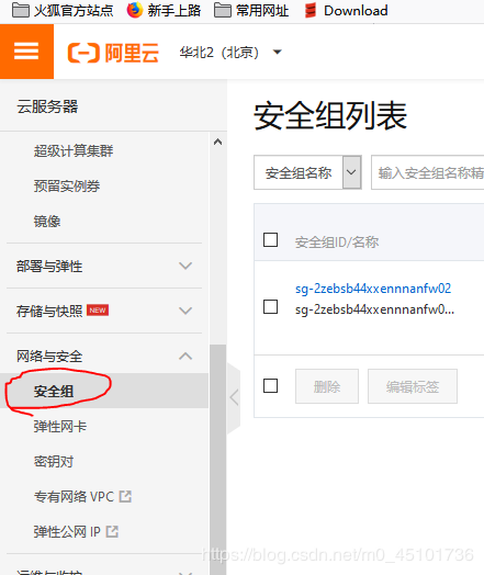 21.在服務器的控制臺,找到安全組(為了開放在服務器中的端口,如果不開放在外網是無法訪問的)