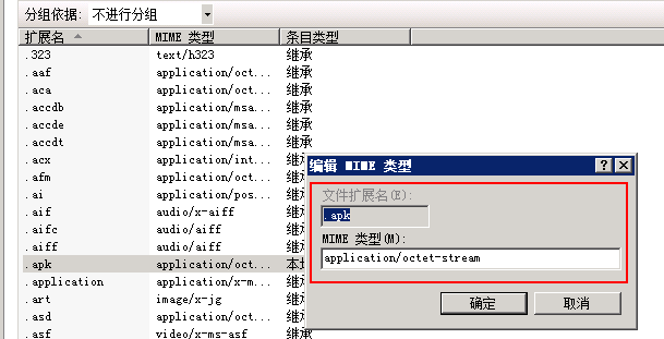 也可以這樣增加:文件擴展名:.apk MIME類型:application/vnd.android.package-archive