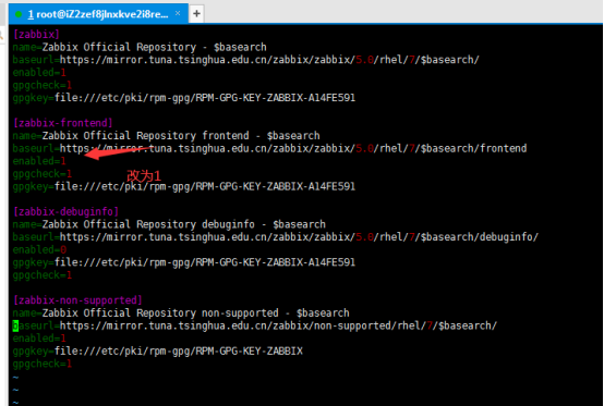 [root@iZ2zeapnvuohe8p14289u6Z /]# vim /etc/yum.repos.d/zabbix.repo