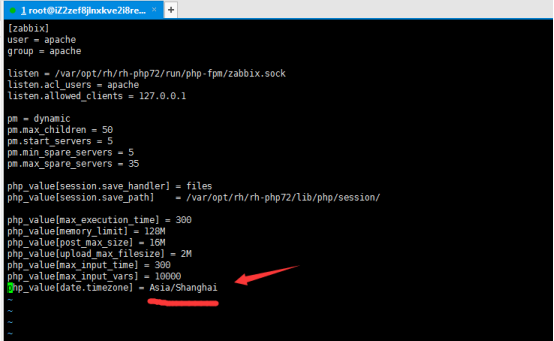 [root@iZ2zeapnvuohe8p14289u6Z /]# vim /etc/opt/rh/rh-php72/php-fpm.d/zabbix.conf