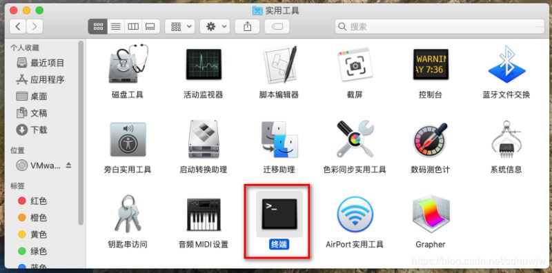 下載完成后,在 Mac 的【訪達】中,打開 【應用程序】——【實用工具】——【終端】