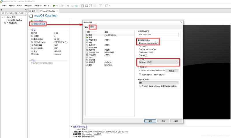 解決方法:首先,關閉虛擬機;然后,【編輯虛擬機設置】——【選項】——【客戶機操作系統】改為【Microsoft Windows(W)】——【版本】選擇【Window 10 x64】——【確定】