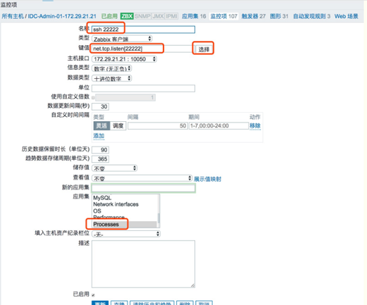 【鍵值】:需要監控的端口 【應用集】:Processes