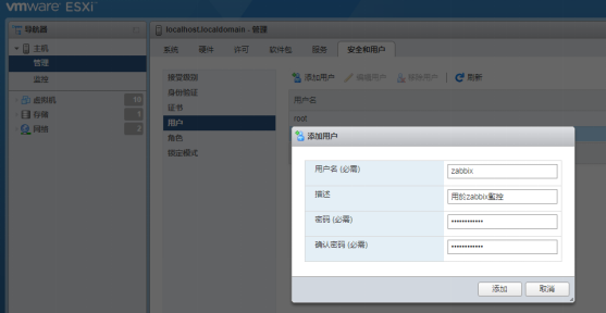 {$VMWARE.USERNAME} --------值為:在esxi主機中添加的監(jiān)控用戶名,如 zabbix