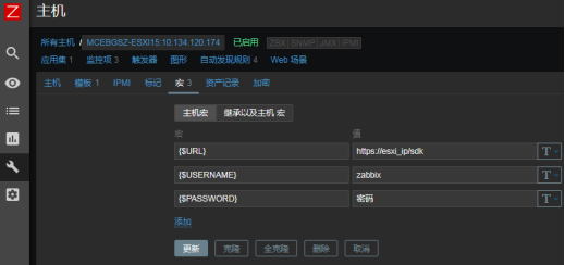 {$VMWARE.PASSWORD} --------值為:在esxi主機中添加的監(jiān)控用戶名的密碼