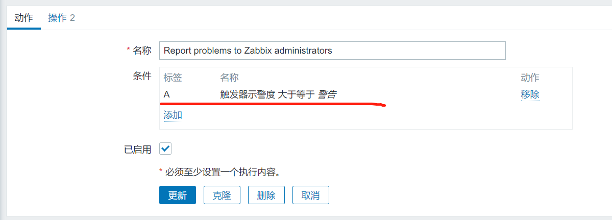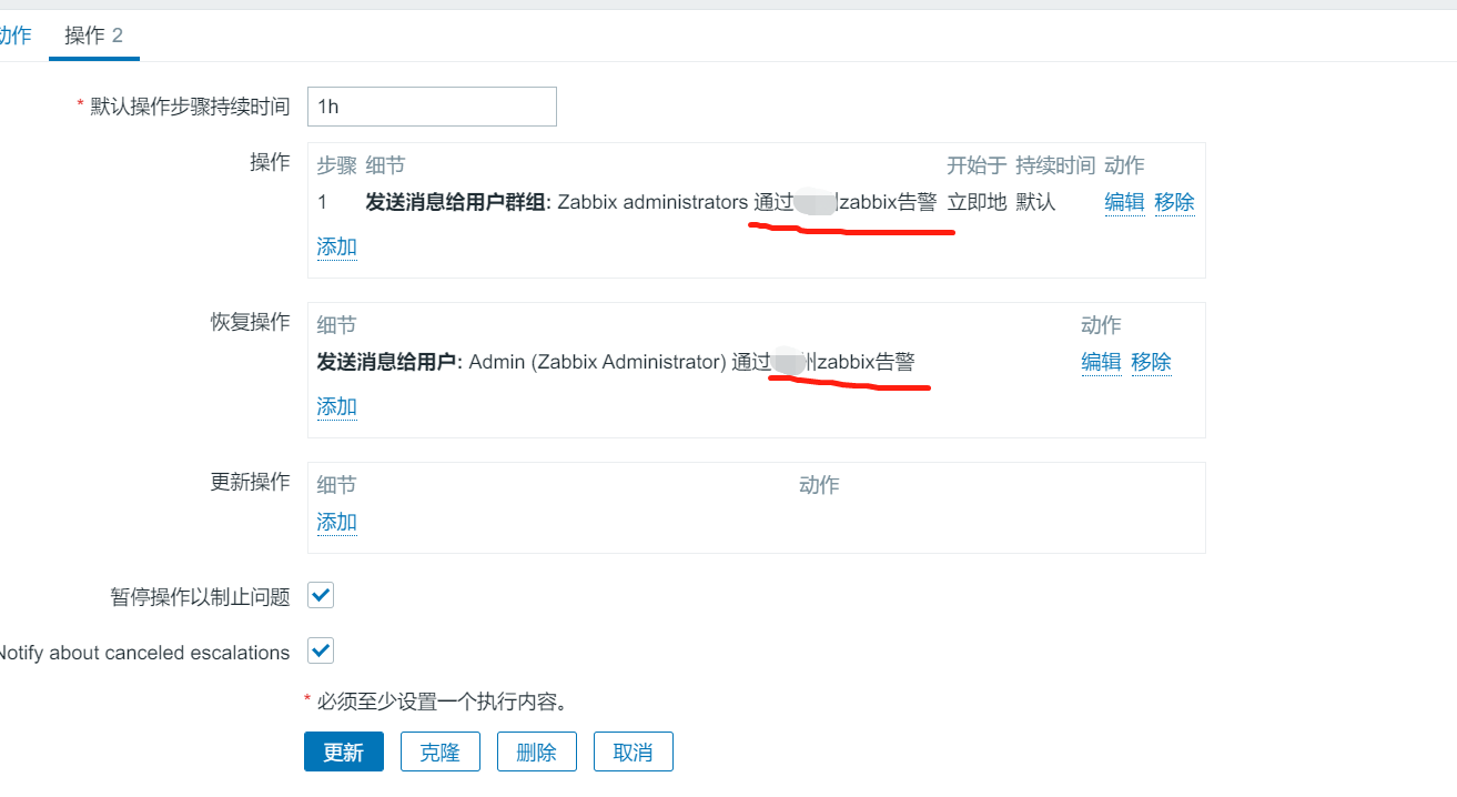 try { Zabbix.Log(4, "params= "+value); params = JSON.parse(value); req = new CurlHttpRequest(); timest = Date.now() data = {}; result = {}; req.AddHeader("Content-Type: application/json"); data.msgtype = "markdown"; // 對應 message參數 data.markdown = {"title" : params.subject, "text" : params.message.replace(/\\n/g, "\n").replace(/awesometimestamp/g, timest)}; Zabbix.Log(4, "markdown= "+JSON.stringify(data.markdown)); // 對應 user參數 data.at = {"atMobiles": [], "isAtAll": "false"}; // 釘釘機器人 resp = req.Post("https://oapi.dingtalk.com/robot/send?access_token=" + params.access_token,JSON.stringify(data) );} catch (error) {}return JSON.stringify(result);然后到消息模板