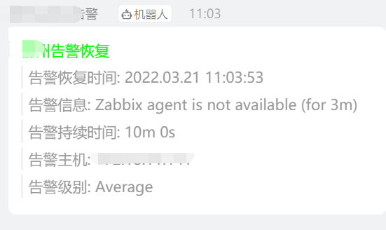 #### <font face='微軟雅黑' color=#00FF00>xx告警恢復</font> \n