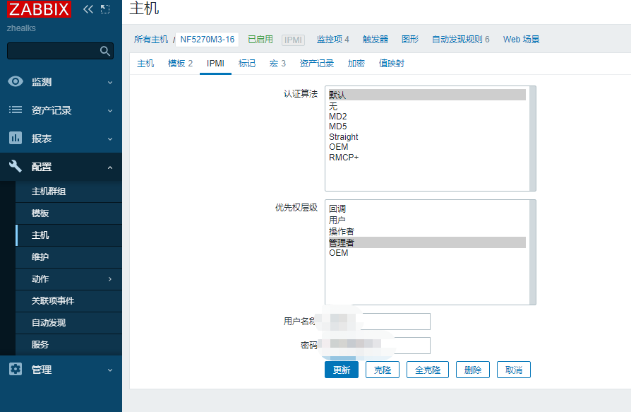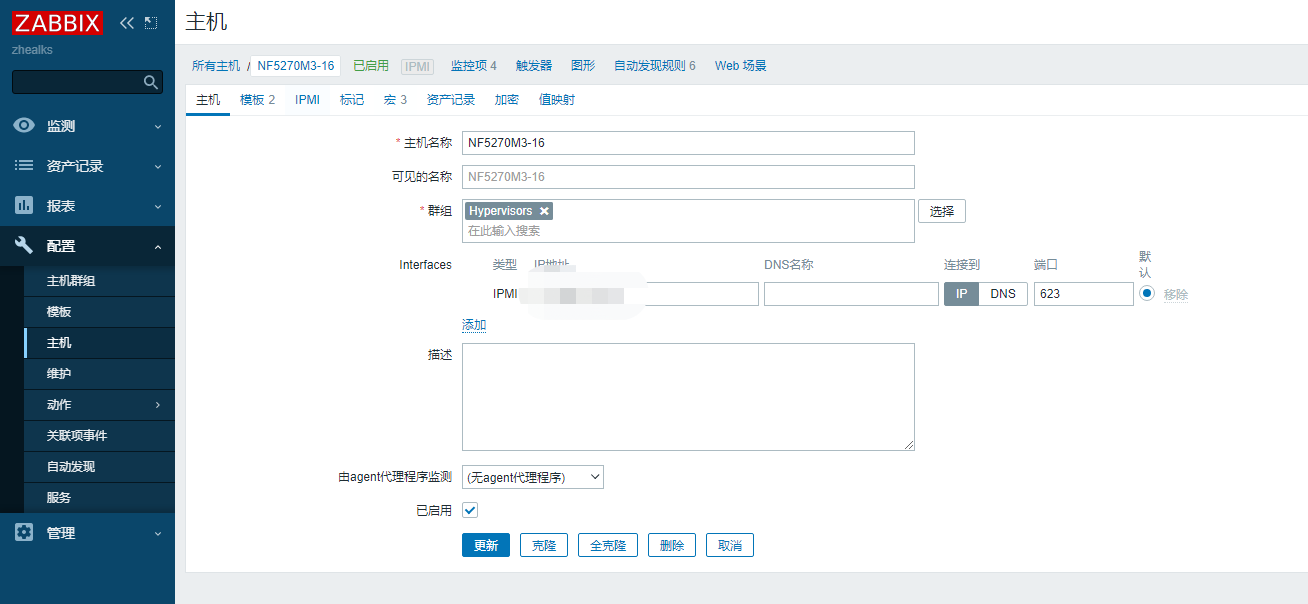 配置–主機–創(chuàng)建主機,客戶端填寫IPMI的IP,端口623