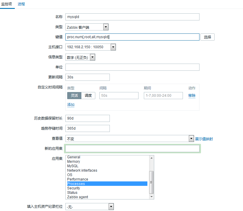 proc.num[,root,all,mysqld]:監(jiān)控項