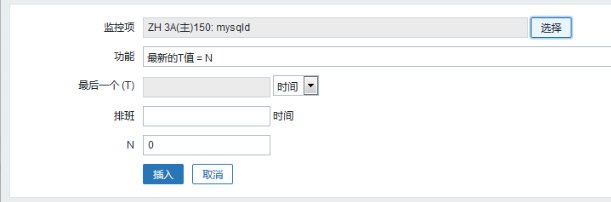 修改{hgh3a01:proc.num[,root,all,mysqld].last()}=0