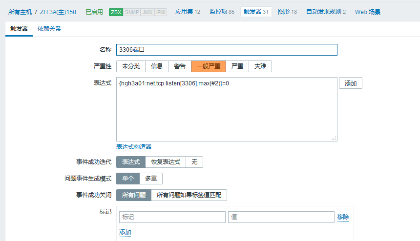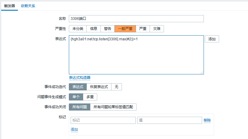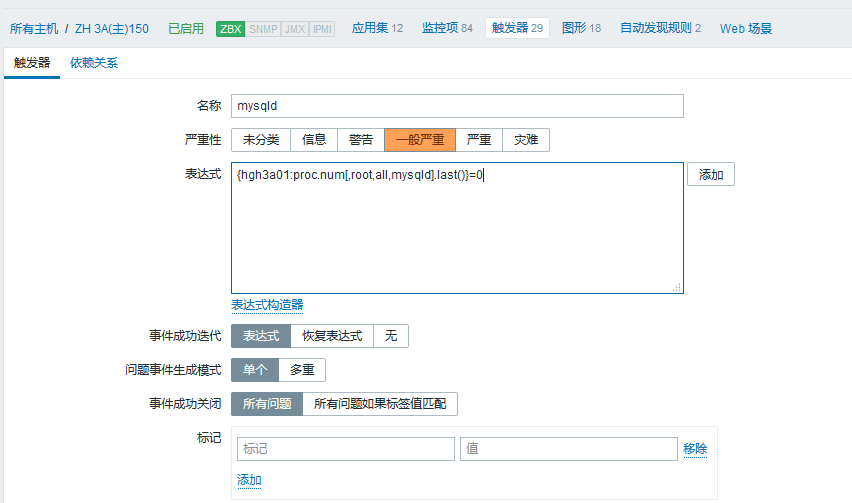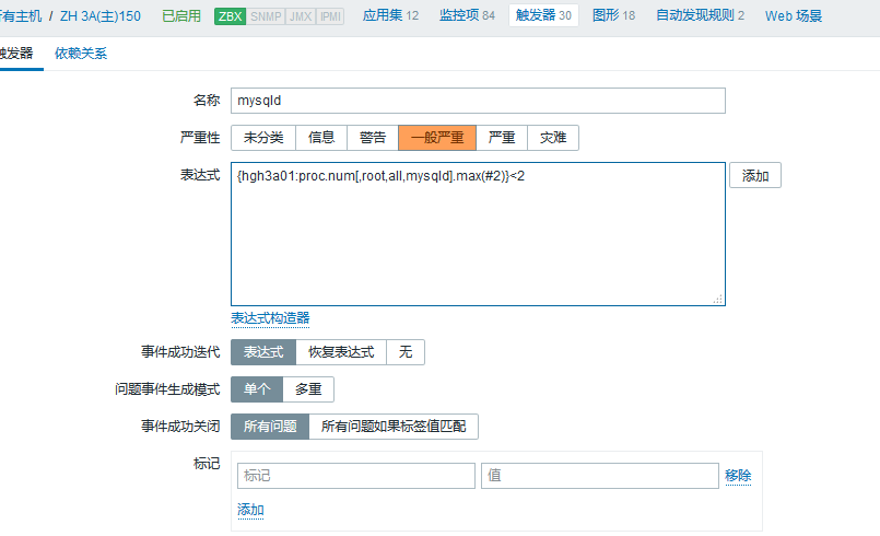 吧測試的進(jìn)程改為正常的(因為mysql 運行的進(jìn)程為兩個我這變設(shè)置的觸發(fā)器為進(jìn)程小于兩個進(jìn)程就發(fā)出告警)