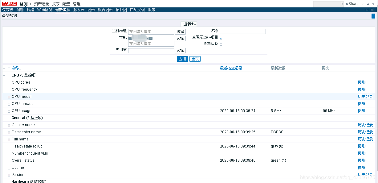 7、進入檢測-最新數據,查看監控主機是否獲取了數據