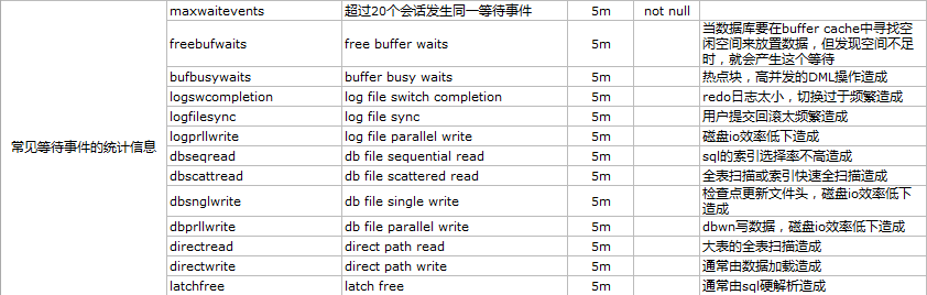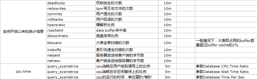 監控項包括常見的等待事件發生的次數,命中率、硬解析比例等。