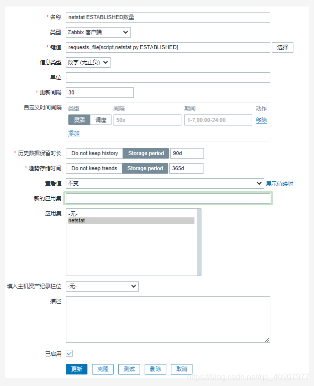 8.新的監控腳本放在文件服務器之后,可直接配置頁面的監控項進行數據采集