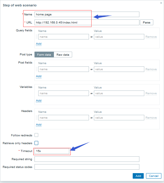 提示:如果沒有驗(yàn)證需求,最后的authentication可以選擇不填寫;最后添加好web url后點(diǎn)擊Add就把對(duì)應(yīng)的web 頁面添加到zabbix 監(jiān)控中了;