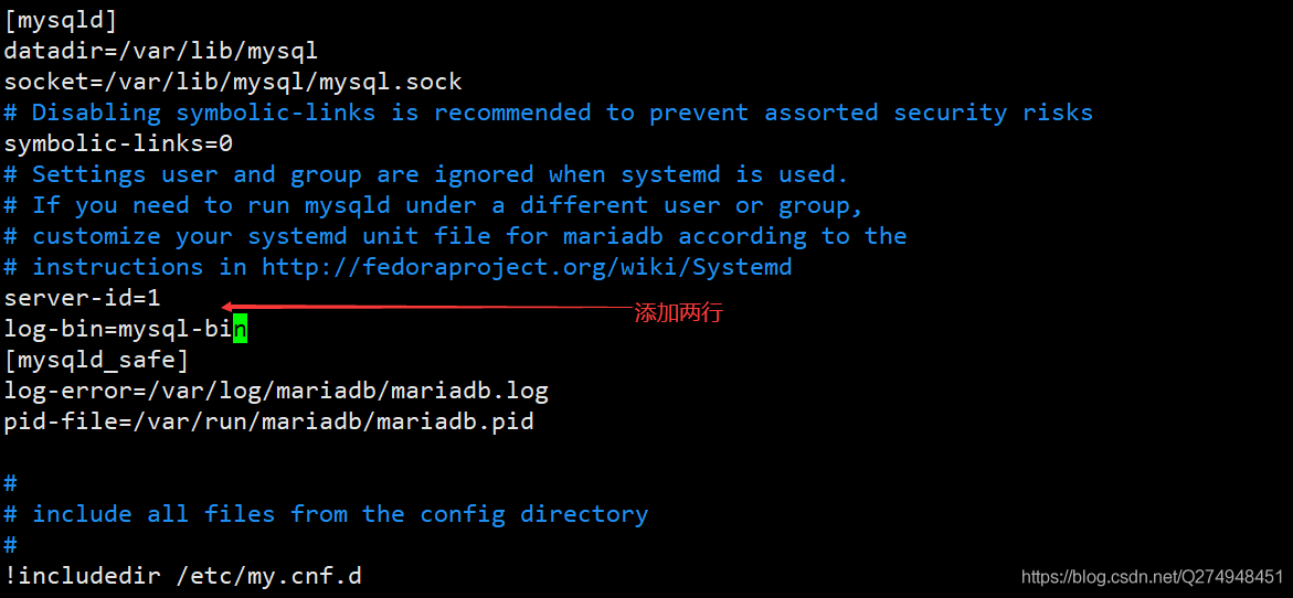 [root@localhost ~]# systemctl restart mariadb[root@localhost ~]# mysqlWelcome to the MariaDB monitor. Commands end with ; or \g.Your MariaDB connection id is 7Server version: 5.5.65-MariaDB MariaDB ServerCopyright (c) 2000, 2018, Oracle, MariaDB Corporation Ab and others.Type "help;" or "\h" for help. Type "\c" to clear the current input statement.MariaDB [(none)]> show master status;+------------------+----------+--------------+------------------+| File | Position | Binlog_Do_DB | Binlog_Ignore_DB |+------------------+----------+--------------+------------------+| mysql-bin.000001 | 175170 | | |+------------------+----------+--------------+------------------+1 row in set (0.00 sec)MariaDB [(none)]> grant all on *.* to "tom"@"%" identified by "123";Query OK, 0 rows affected (0.00 sec)MariaDB [(none)]> flush privileges;Query OK, 0 rows affected (0.00 sec)