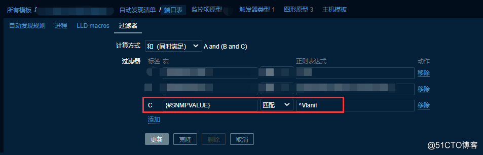 過濾方法:在自動發現規則添加正則表達式 ^Vlanif,然后點 現在檢查 等待重新自動發現即可過濾此類監控項。