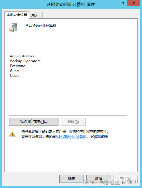 4.本地策略中->用戶權限分配->拒絕從網絡訪問這臺計算機 把用戶移除