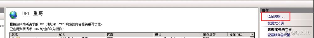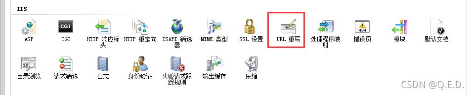<?xml version="1.0" encoding="utf-8"?><configuration> <system.webServer> <rewrite> <rules><rule name="HTTP to HTTPS redirect" stopProcessing="true"> <match url="(.*)" /> <conditions> <add input="{HTTPS}" pattern="off" ignoreCase="true" /> </conditions> <action type="Redirect" redirectType="Found" url="https://{HTTP_HOST}/{R:1}" /></rule> </rules> </rewrite> </system.webServer></configuration>5、URL重寫規(guī)則:圖形化配置 找到“URL重寫”