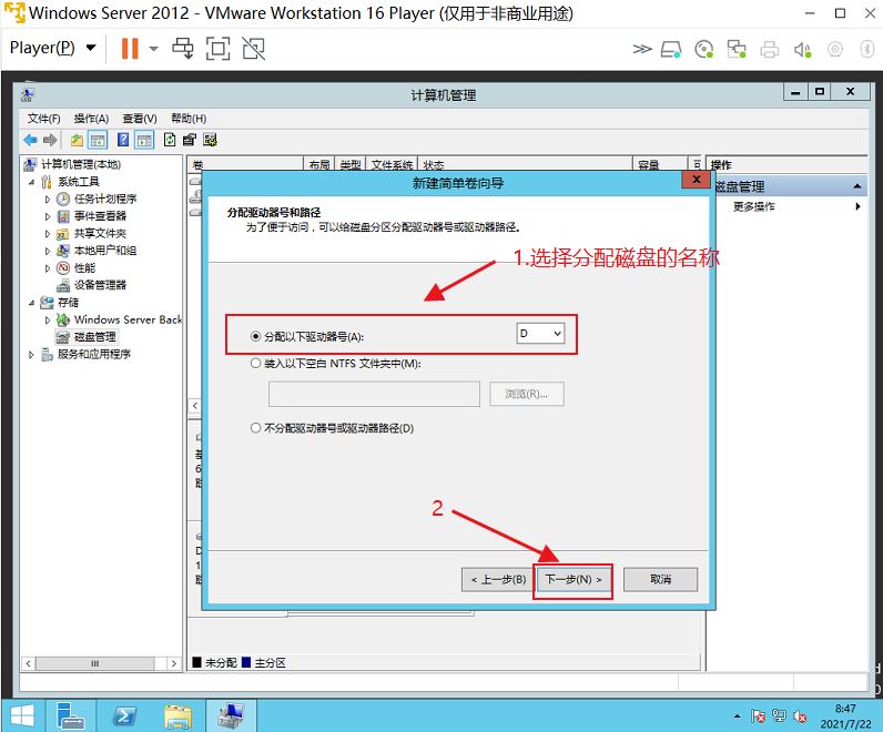- 6.設置新建磁盤的盤符名稱——下一步