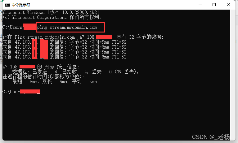 2、在命令窗口中輸入剛才配置的 stream.mydomain.com,可以查找出剛才添加的主機地址。