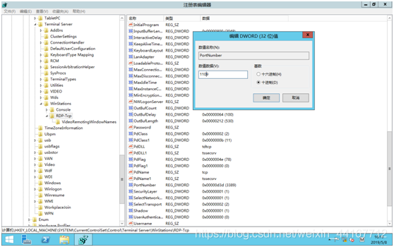 請注意,在這里修改過了以后,還沒有修改成功,注冊表文件的另外一個位置也必須做相應的修改,路徑為HKEY_LOCAL_MACHINE/SYSTEM/CurrentControlSet/Control/Terminal Server/Wds/rdpwd/Tds/tcp找到下面的 “PortNumber”,用十進制方式顯示,并做出修改。