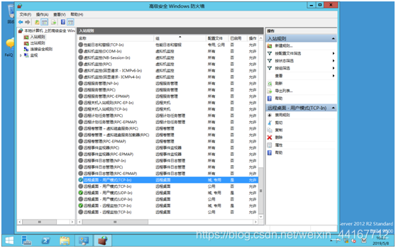 然后找開2012windows防火墻高級管理-選入站規則-遠程桌面用戶模式(TCP-IN)
