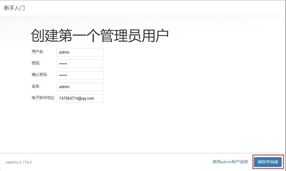 插件安裝完成以后,會跳轉到創建管理員用戶界面,這里創建一個管理員:
