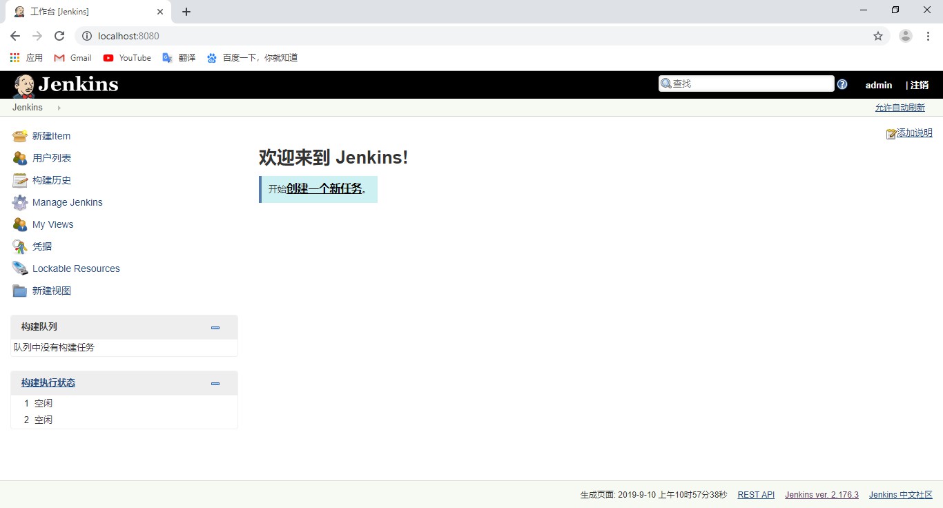 點擊“開始使用Jenkins”按鈕,即可進入Jenkins: