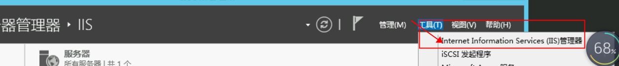 3、打開服務(wù)器管理,可以看到我已經(jīng)下載了IIS,不過還可以在添加角色和功能 下安裝其他需要的功能