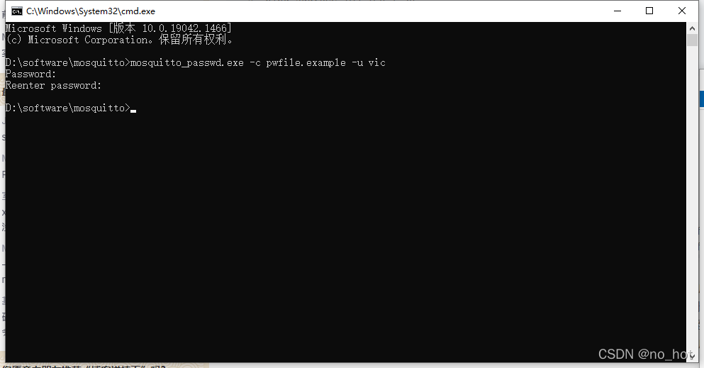 執行:mosquitto_passwd.exe -c pwfile.example -u vic