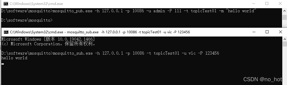 mosquitto_pub.exe -h 127.0.0.1 -p 10086 -u admin -P 111 -t topicTest01 -m "hello world"