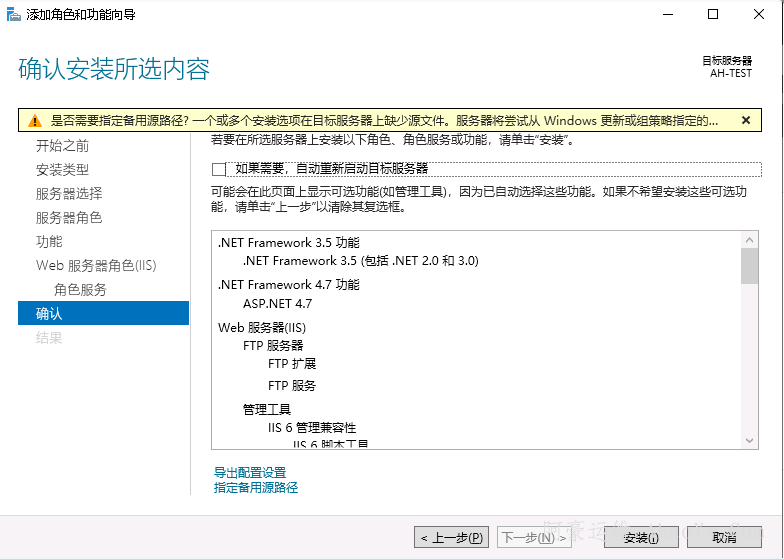 11、確認安裝以下功能,點擊安裝后等待安裝進度完成