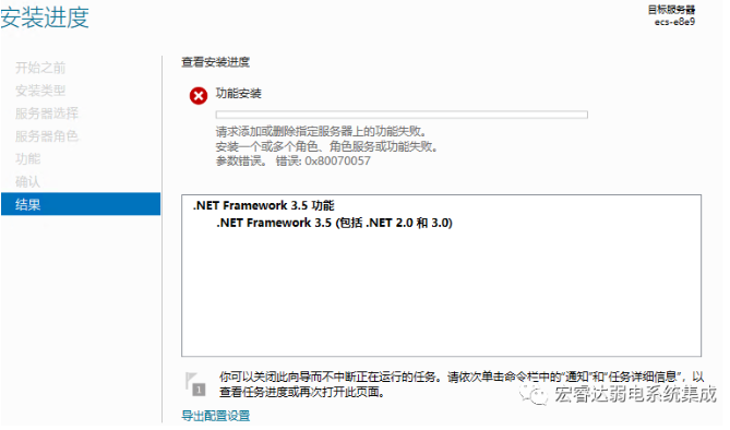報錯提示:請求添加或刪除指定服務器上的功能失敗。安裝一個或多個角色,角色服務或功能失敗。參數(shù)錯誤