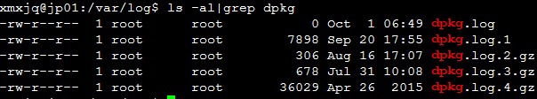 在/var/log下列出文件列表,可以看到dpkg的日志的確被分割并壓縮了: