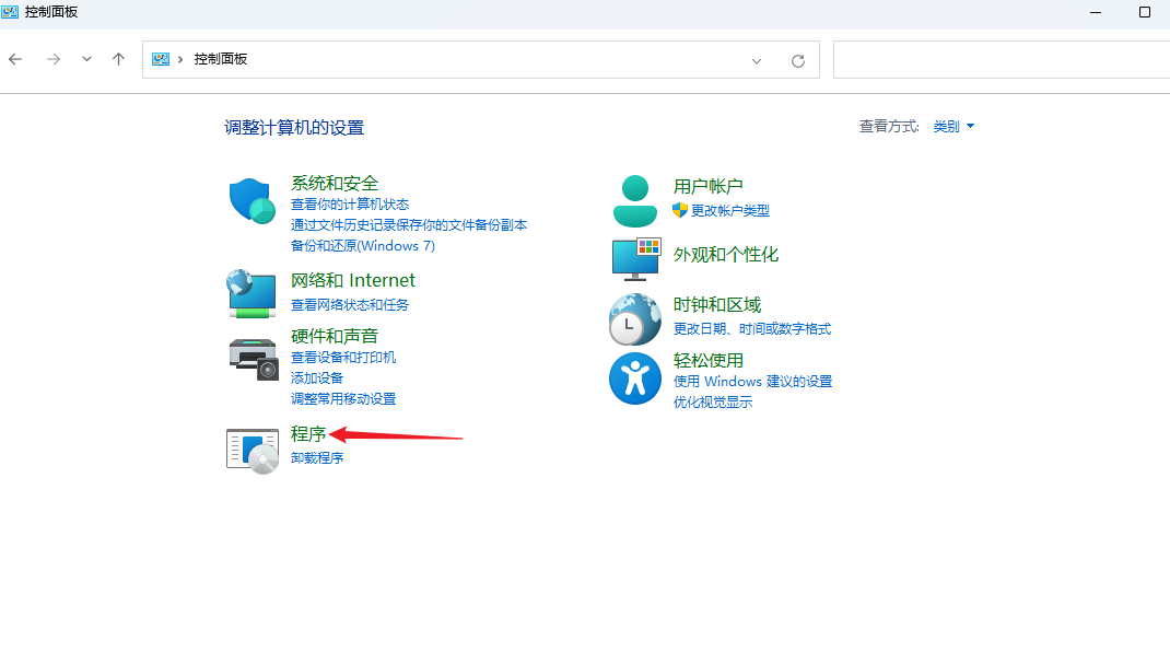 1.打開控制面板,點擊程序