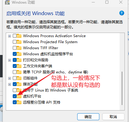 3.找到虛擬機平臺,勾選,點擊確定