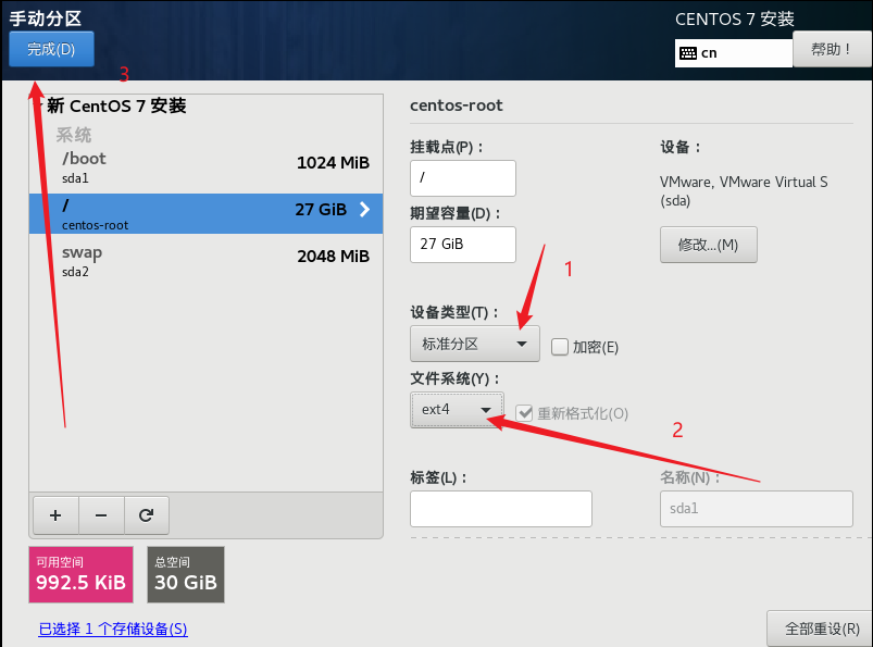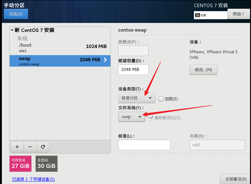 設為標準分區和swap