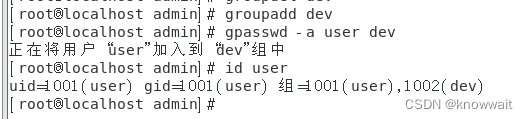 4、把用戶(hù)添加到組中:gpasswd -a 用戶(hù)名 組名