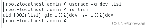 6、添加用戶(hù)時(shí),指定所屬的組(主組):useradd -g 組名 用戶(hù)名