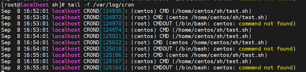 tail -f /var/log/cron #crontab的日志信息放在/var/log文件夾中cat /vat/log/cron