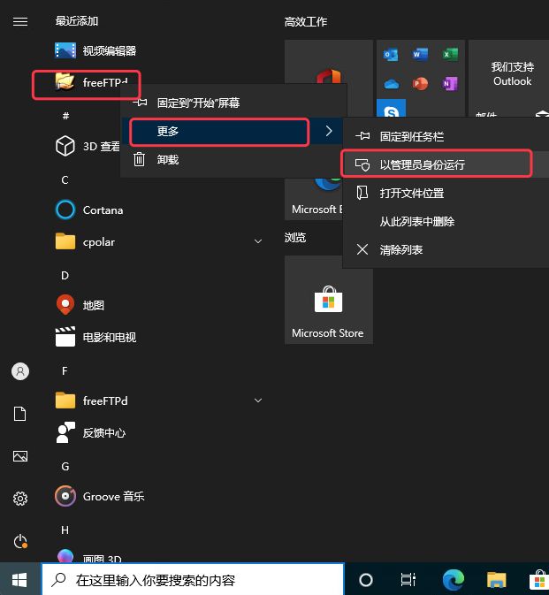 Yes - 點擊開始菜單—— freeFTPd,注意:這里要點擊鼠標右鍵,