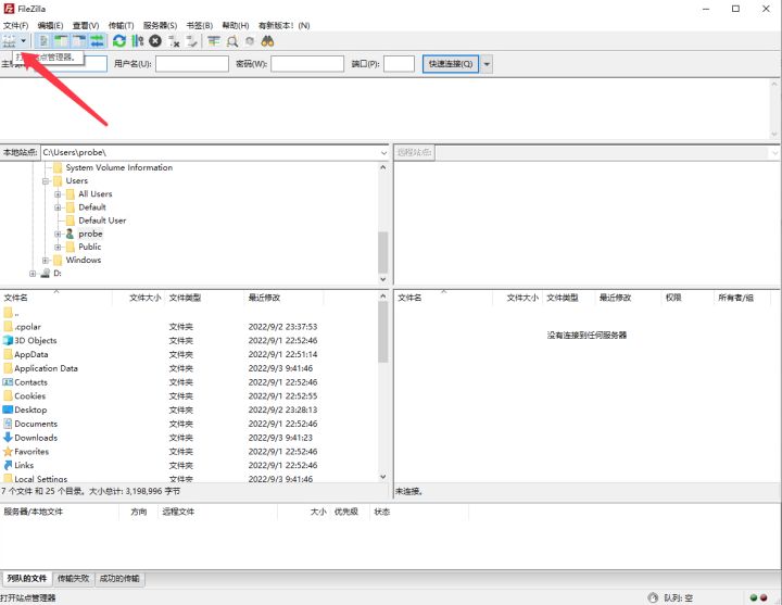 我們打開filezilla,按步驟2的操作方式,重新添加一個新站點。在工具欄里,打開站點管理器,添加新站點。