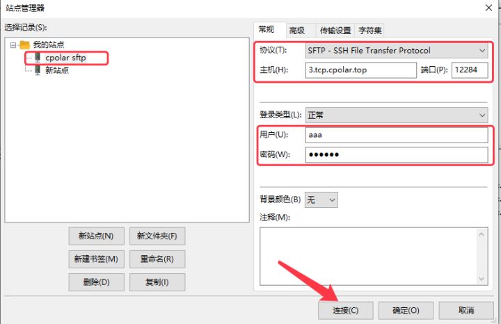 可以看到,已經通過cpolar提供的公網域名,連接SFTP服務器成功。