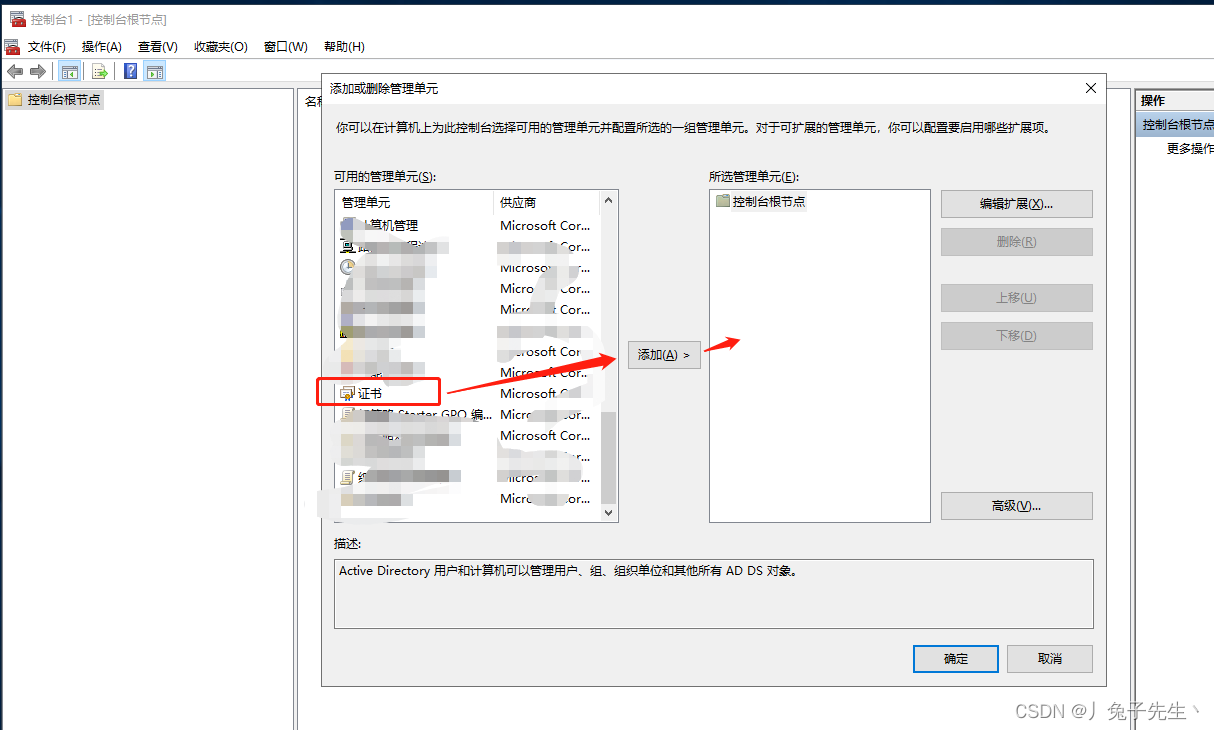 1)點(diǎn)擊文件,選擇“添加/刪除管理單元”