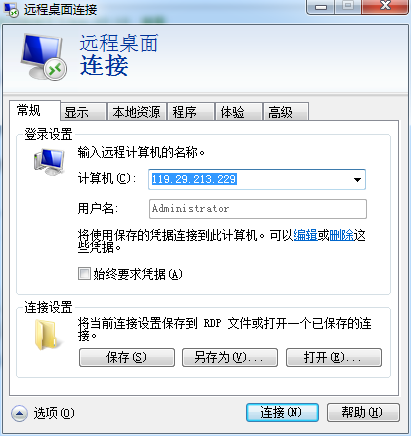 - 點(diǎn)擊“選項(xiàng)”按鈕,打開遠(yuǎn)程連接選項(xiàng)卡