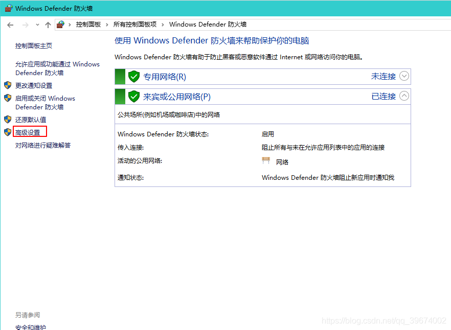 打開控制面板防火墻設置